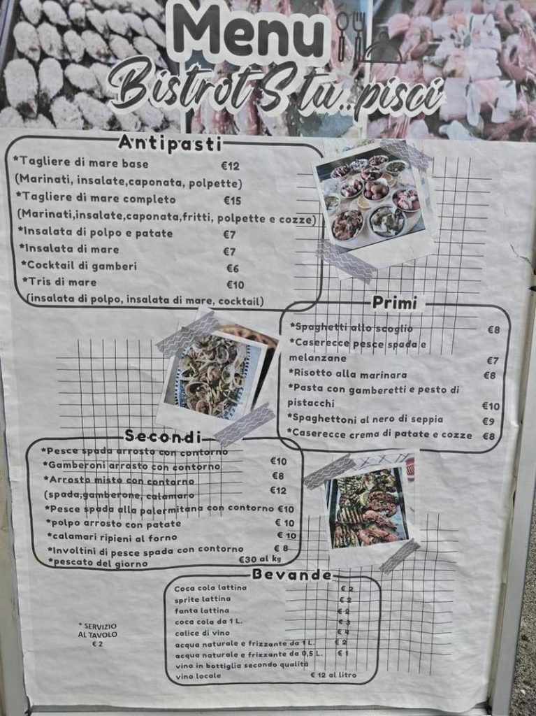 Kolejne odkrycie w 2025 roku to rybny sklep i knajpka Pescheria Gastronomica Stu…pisci Bistrot di mare w centrum miasta – gdy większość rybnych restauracji jest w marinie. Świeże ryby i owoce morza przygotowywane na miejscu, tanie i smaczne. W sezonie może być tłum ludzi, ale jest opcja na wynos. Czynne od rana do obiadu. [ MAPKA ]