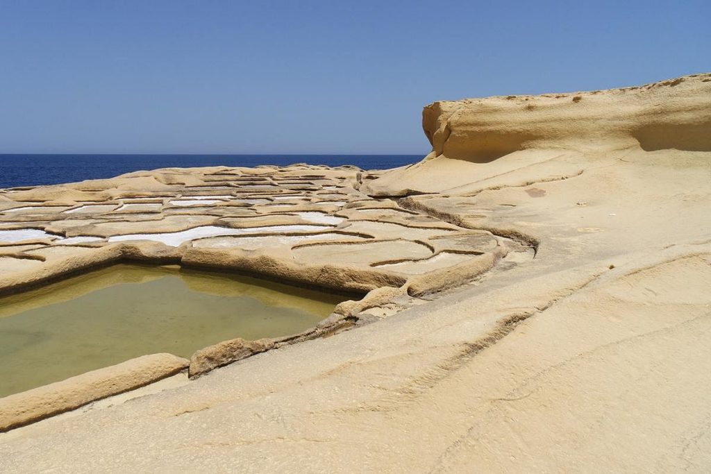 W Zebbug wysiadamy na przystanku Onici lub Saghtrija (z tego przystanku musimy się cofnąć 150 m, ale widok na wybrzeże jest wspaniały) i idziemy w dół w stronę fiordu Wied il-Ghasri (1,2 km). Jest to przepiękna zatoczka, kamienista, w której można się wykąpać (uwaga na bardzo śliskie kamienie i meduzy). Potem schodami trzeba wspiąć się z powrotem i iść wzdłuż klifu, po skałach. Gdzieniegdzie możecie zauważyć namalowane czerwone kropki, to jest oznaczenie szklaku. Droga jest łatwa, wystarczą tutaj zwykłe sandały. Idziemy cały czas nad brzegiem morza, mijamy wielką jaskinię, w której często ktoś nurkuje oraz mniejsze i większe baseny z wodą morską, z której pozyskuje się sól. Słynne i najpiękniejsze panwie solne (Salt Pans) zaczynają się bliżej Marsalforn i zatoki Xwejni Bay. W pewnym miejscu musimy wyjść ze skał na drogę i iść nią dalej, bo po panwiach nie wolno chodzić. Dochodzimy do Marsalforn, chyba najbardziej turystycznego miasteczka na Gozo. Można się przez nie przespacerować, wypić kawę, kieliszek wina lub zjeść coś w jednej z wielu restauracji. Z Marsalforn do Victorii jeździ autobus 310 lub do portu w Mgarr – 322. Cała trasa ma około 5 km, warto przeznaczyć na nią 3 godziny, żeby móc się zatrzymywać po drodze. W Xwejni Bay można się wykąpać, również w centrum Marsalforn jest niewielka plaża.