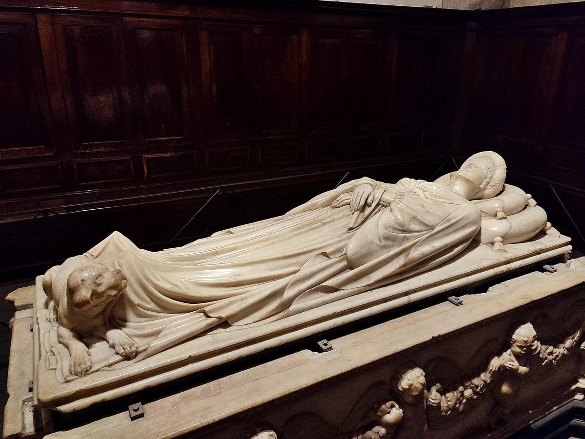Drugi powód, dla którego chodzę do katedry za każdym razem, gdy jestem w Lukce, to wzruszająca rzeźba nagrobna Ilarii del Carreto, żony władcy Lukki z początku XV stulecia. Ilaria zmarła w wieku 26 lat, rodząc drugie dziecko. W kościele, w zakrystii, jest tylko sarkofag, samo ciało Ilarii spoczywa gdzie indziej. Ponieważ za wstęp do kościoła trzeba zapłacić kilka euro, więc niewielu tu odwiedzających. Piękną postać zmarłej 600 lat temu Ilarii i psa, symbolu wierności u jej stóp, udaje mi się więc na ogół obejrzeć samotnie. Ale namawiam was – nie żałujcie paru euro, żeby zobaczyć Ilarię i Volto Santo.