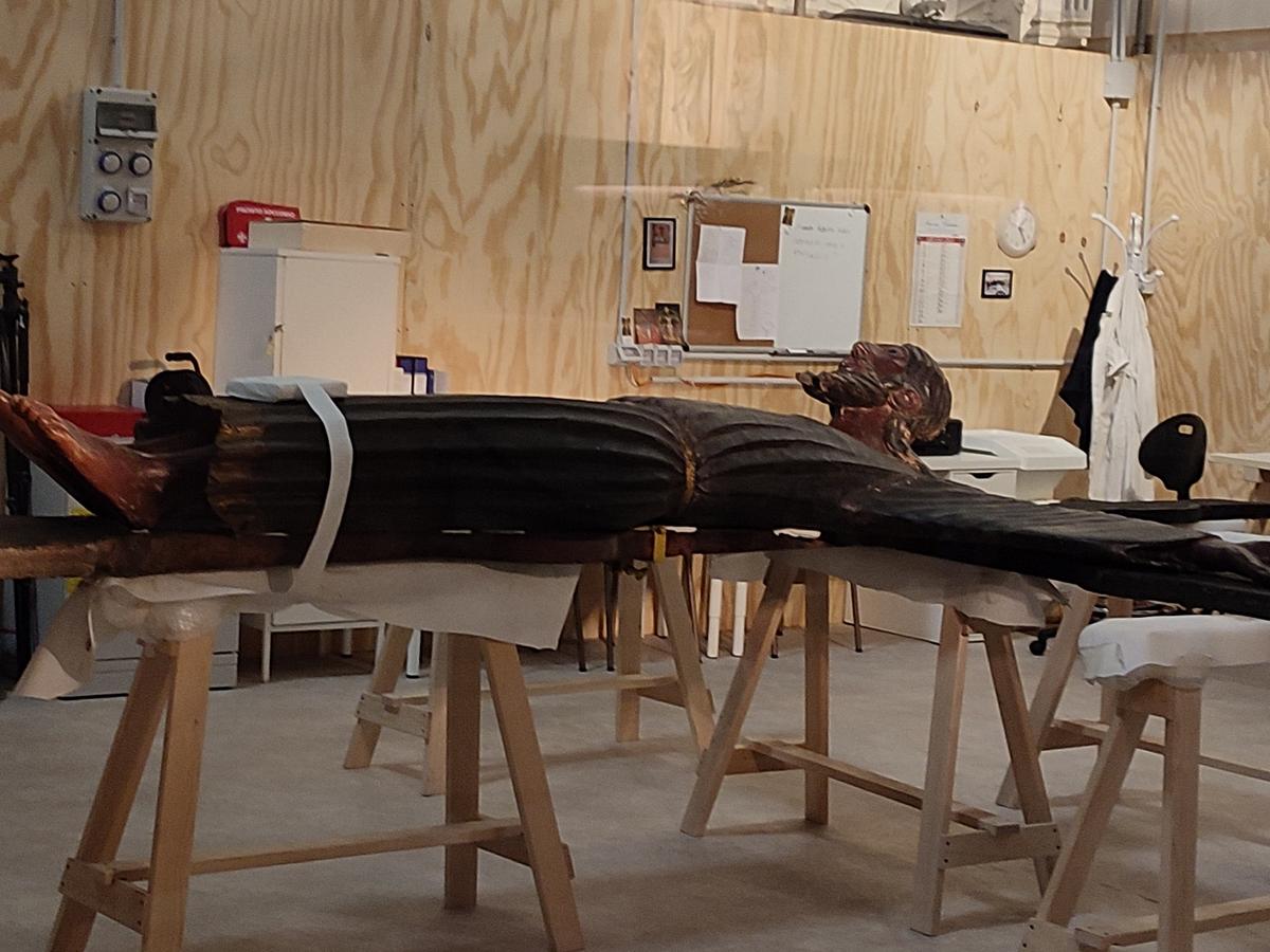 Aktualnie rzeźba jest w konserwacji, krzyż leży, można go oglądać przez szybę – ale wrażenie robi przez to może jeszcze większe, ten człowiek leżący, bardziej nam bliski. Twarz Chrystusa to twarz nie młodego, trzydziestoparoletniego mężczyzny, tylko starego człowieka… Według legendy twarz wyrzeźbił anioł nocą, gdy św. Nikodem zasnął, mając już gotową całą figurę bez twarzy. To twarz pełna powagi i cierpienia, rezygnacji i spokoju. Inna niż twarze Chrystusa, do których jesteśmy przyzwyczajeni.