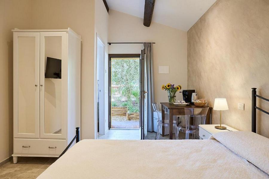 To małe gospodarstwo agroturystyczne leży tuż obok Montepulciano, toskańskiego miasta słynącego z wina. Właściciele produkują wino i oliwę w niedużych ilościach. Do wynajęcia jest tu jedno mieszkanie dla 2-4 osób, z wyjściem do gaju oliwnego oraz dwa oddzielne pokoje z łazienkami. Na zewnątrz są przygotowane stoliki z krzesłami, leżaki. Jest klimatyzacja, parking, wi-fi.