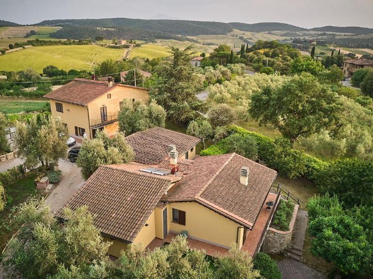 Odległości od ciekawych miejsc: Pienza 15 km, San Quirico d’Orcia 25 km, Cortona 35 km, Arezzo 60 km, Siena 60 km, Perugia 70 km.