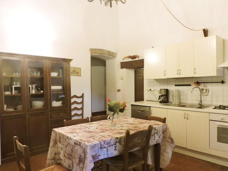 Na każdym piętrze znajduje się łazienka z prysznicem. Z kuchni drzwi wychodzą na kamienną werandę z panoramicznym widokiem, a tylne drzwi prowadzą do zacienionej części ogrodu, z której roztacza się rozległy widok na dolinę.
