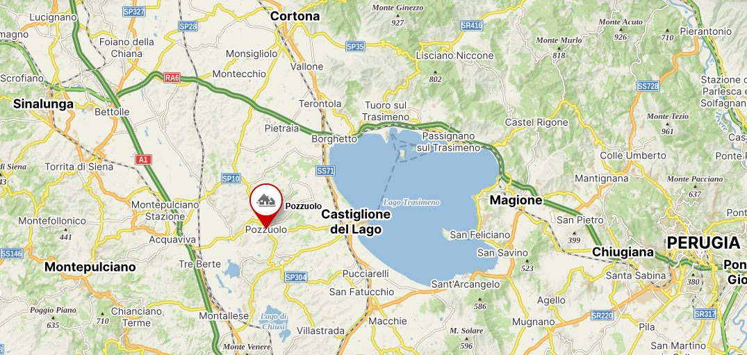 Fantastyczna lokalizacja, jeśli chodzi o zwiedzanie Toskanii i Umbrii. Odległości: Montepulciano 16 km, Pienza 32 km, Jezioro Trasimeno 8 km, Jezioro Chiusi 10 km, Cortona 20 km, Arezzo 60 km, Perugia (lotnisko) 50 km, Asyż 75 km, Siena 80 km, Rzym (lotniska) 180 km, Florencja 115 km.