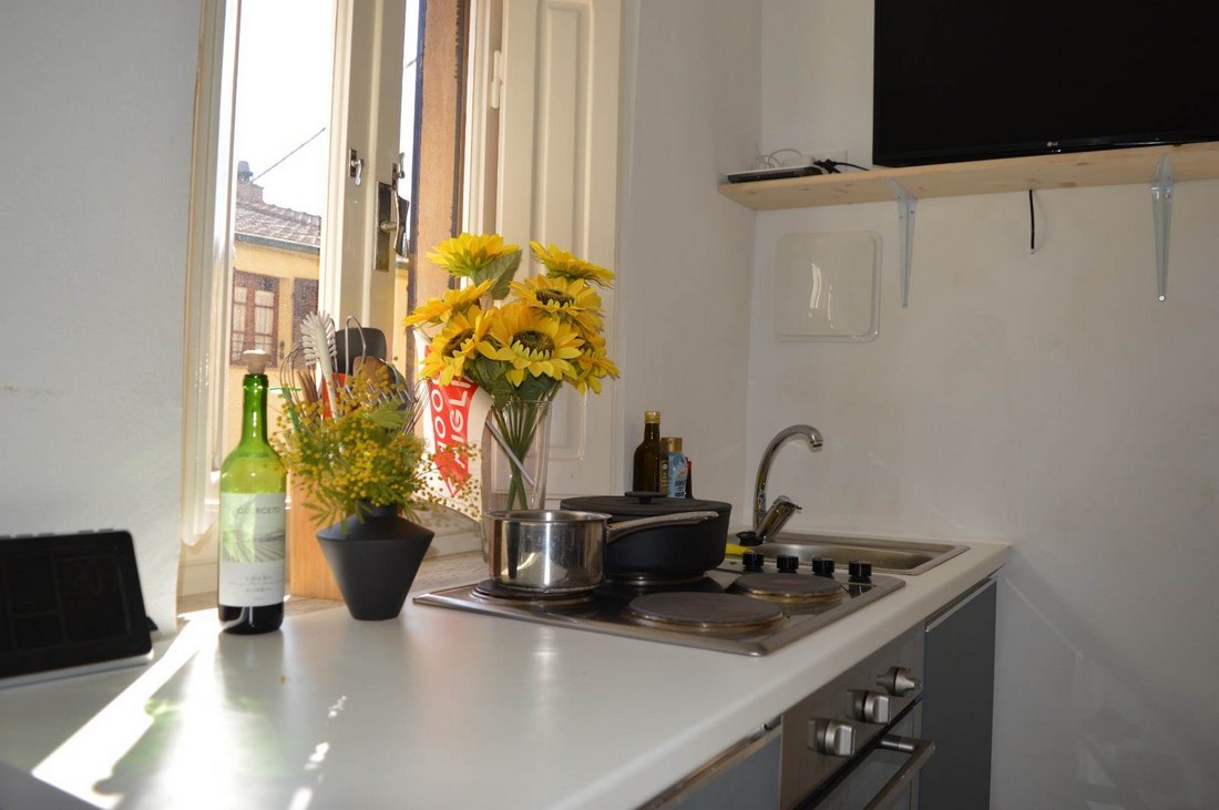 Mieści się na niskim piętrze, ma powierzchnię 58 mkw. Mieszkanie ma kuchnię z salonikiem, sypialnię (obecnie z 2 łóżkami) oraz łazienkę z prysznicem. Na zewnątrz mały taras. Zostało odnowione i jest w dobrym stanie.